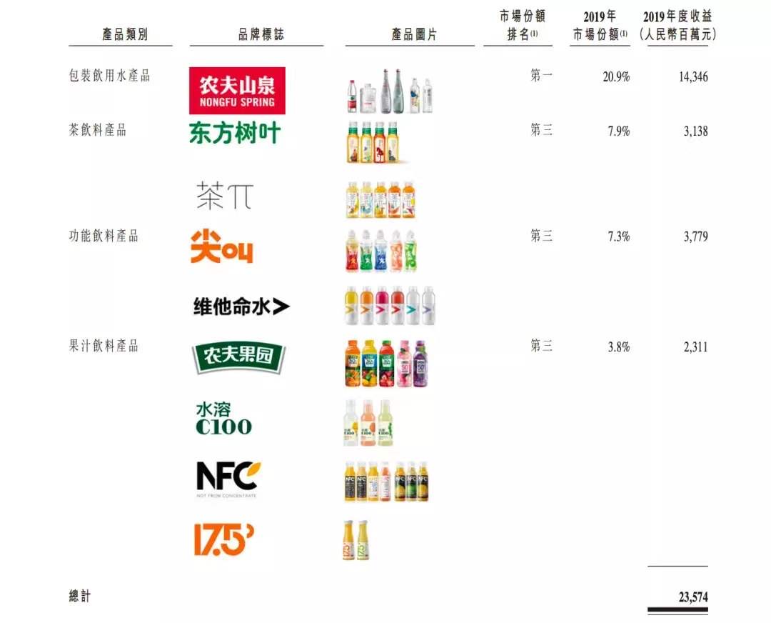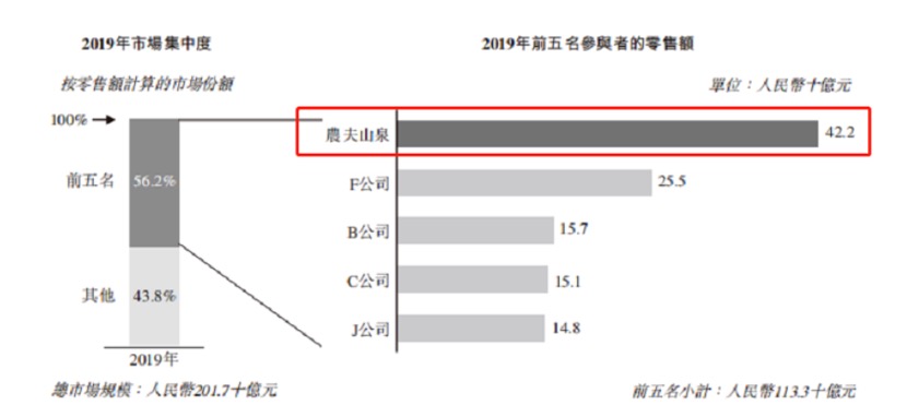 農(nóng)夫山泉在包裝飲用水市場中的地位(來自招股書)