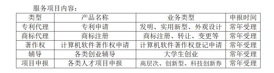 服務項目:辦公租賃-知識產(chǎn)權-產(chǎn)品資質(zhì)-企業(yè)資質(zhì)-科技財務-人才計劃-科研載體
