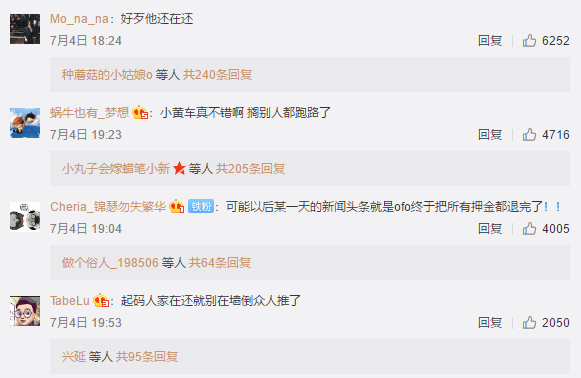 ofo方面表示,ofo將按用戶提交順序進行退款,“請廣大用戶耐心等待,我們承諾依序妥善處理好退押金事宜,請廣大用戶放心!”。